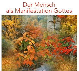 Der Mensch ist eine Mani-festation Gottes und besitzt darum strukturelle und organische Beziehungen zu Gott. In der Bibel heißt es, der Mensch sei nach dem Bild und Gleichnis Gottes, als Gottes Ebenbild erschaffen. Das "Bild Gottes" bedeutet hier - im Sinn der Bibel - nicht ein Portrait von Menschenhand. Das Bild, das ein Künstler malt, ist außerhalb von ihm und etwas anderes als er. Gott aber hat den Menschen nach Seinem eigenen Bild geschaffen. Er ist mit Seinem eigenen Sein und Wesen in den Menschen eingegangen. Mit Seinem ganzen unendlichen Bewusstsein, mit all Seinen Kräften und Möglichkeiten weilt er in Seinem Abbild, das Er aus Sich - aus Seiner eigenen Substanz - erschaffen hat.