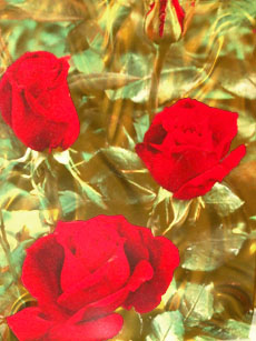 die lächelnden Knospen der Rosen werden mit glänzendem Gold besprengt, die duftende Luft ist erfüllt mit den süssen Melodien der singenden Vögel.