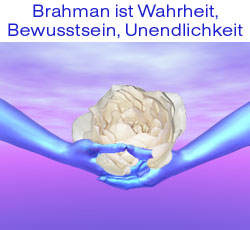 "OM! Der Kenner Brahmans erlangt das Höchste. So wurde es verkündet. Wer Brahman erkennt, das Wahrheit, Bewusstsein, Unendlichkeit ist, das im Herzen wohnt, im höchsten Himmel, der erfreut sich endloser Glückseligkeit."Taittiriya Upanishad 2.1.1.