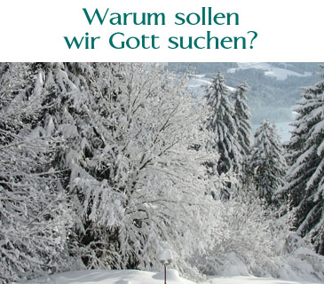 Warum sollen wir Gott suchen, lieben und erfahren?Warum? - Weil wir im täglichen Leben nach Freude verlangen, und wahre Freude, eine von allem unabhängige Freude, eine unendliche Freude, eine ewige Freude gibt es nur in Gott.