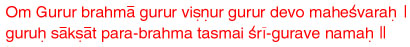 O Guru! Ich verbeuge mich vor Dir, der Du allein die Wahrheit bist, der Du den Strahlenglanz der Weisheit besitzt und in der Form des Universums leuchtest.
