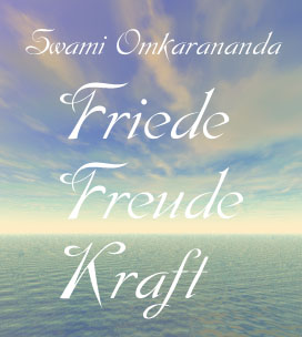 Verschmelzung von Transzendenz und Materie im Denken Swami Omkaranandas.Friede, Freude und Kraft gehören zu jenem Bereich des Wesens im Menschen, der jenseits des Psychologischen ist, der sich vom Materiellen unterscheidet, der oberhalb von diesem liegt und dennoch als erhaltende Substanz in ihm zugegen ist. Deshalb kann er allein die Materie in allen ihren Daseinsformen, Bedürfnissen und Bestrebungen erhalten, sie erfüllen, durchdringen und dennoch transzendieren. Jeder Versuch, Friede, Freude und Kraft nur aus dem äusseren Bereich des Lebens und dessen Möglichkeiten zu gewinnen, muss von Grund auf fehlgehen, weil er seinem ureigensten Bestreben zuwiderläuft und es zunichte macht. Es ist dagegen der natürliche und beste Weg, sie aus ihrem Ursprung im innersten Prinzip zu schöpfen und das äussere Leben damit zu überfluten.